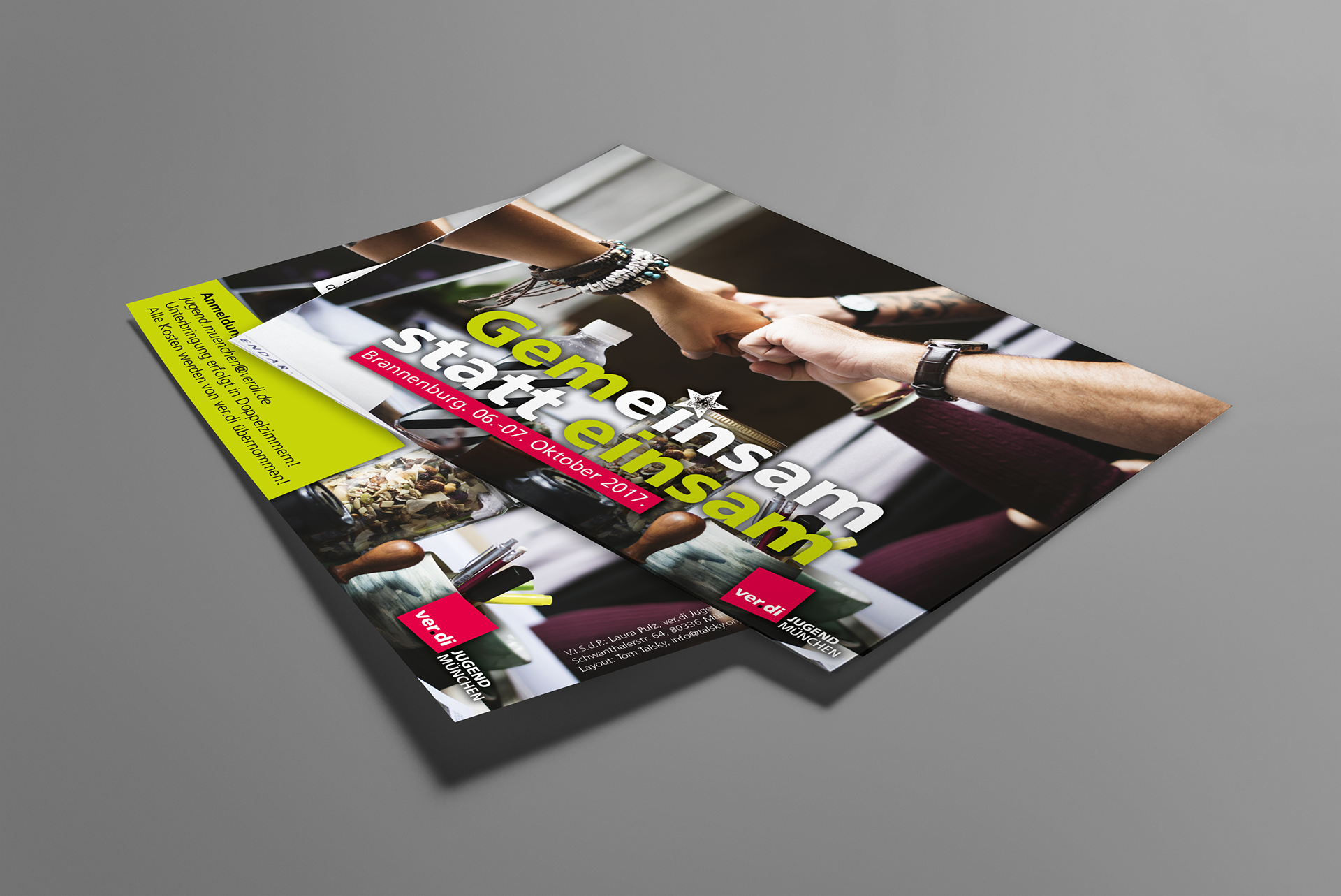 Für in Neueinsteigerseminar wurde eine Einladungs-Postkarte in DINA6 benötigt. Format: DINA6 Auftraggeberin: ver.di Jugend München