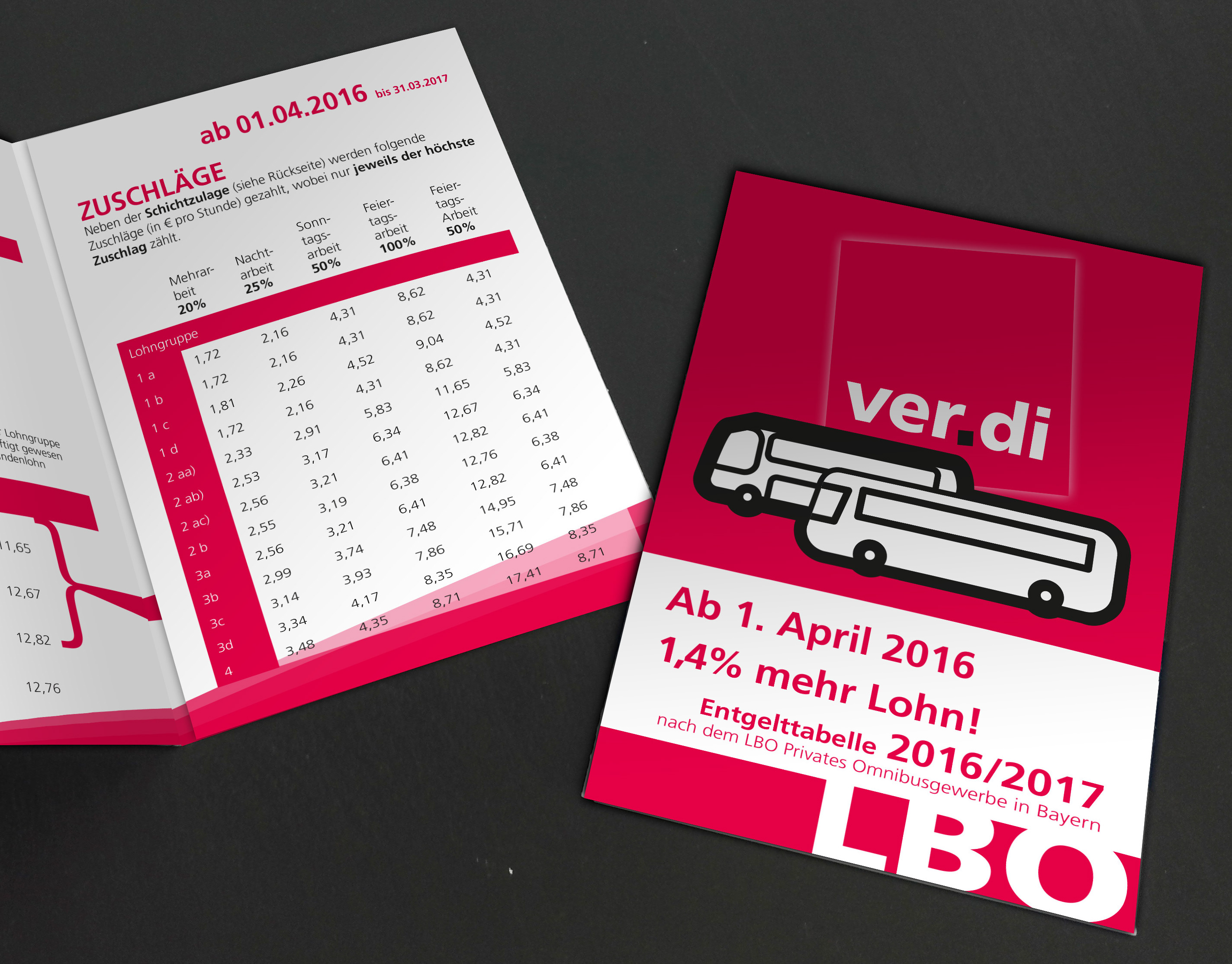 Zur Aktionswoche "Gute Arbeit - Guter Lohn" plante der Fachbereich Verkehr und der Fachbereich Ver- und Entsorgung der Gewerkschaft ver.di in München & Region einen Flyer, um die Kolleginnen und Kollegen im Betrieb auf die Wichtigkeit der Gewerkschaftsmitgliedschaft hinzuweisen.