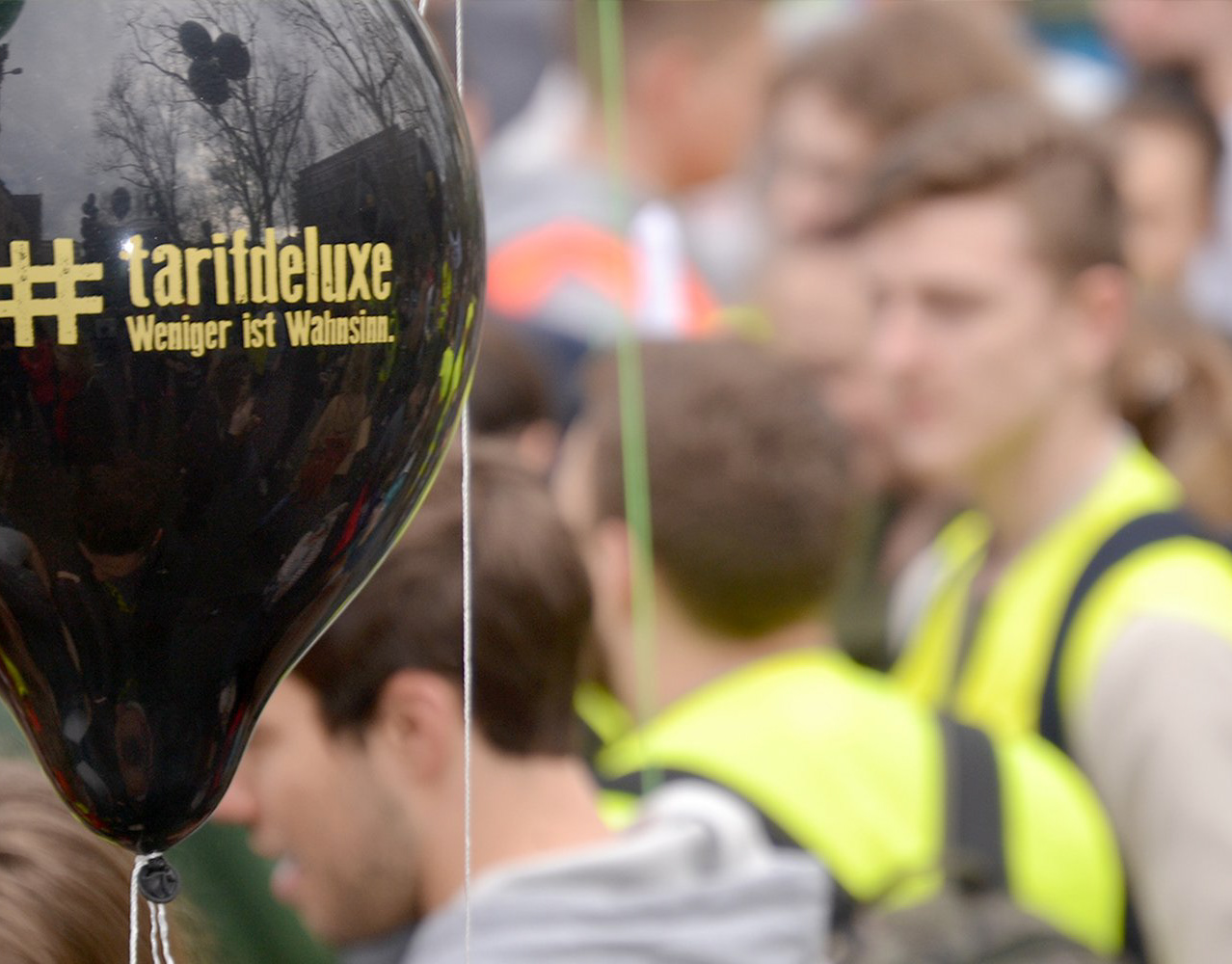 Für die Tarifrunden u.a. im öffentlichen Dienst wurde in Anlehnung an das zentrale #Tarifdeluxe-Design spezifisches bayerisches Material entwickelt. Vor allem Luftballons sollten auf Streikkundgebungen das Motto sichtbar machen.