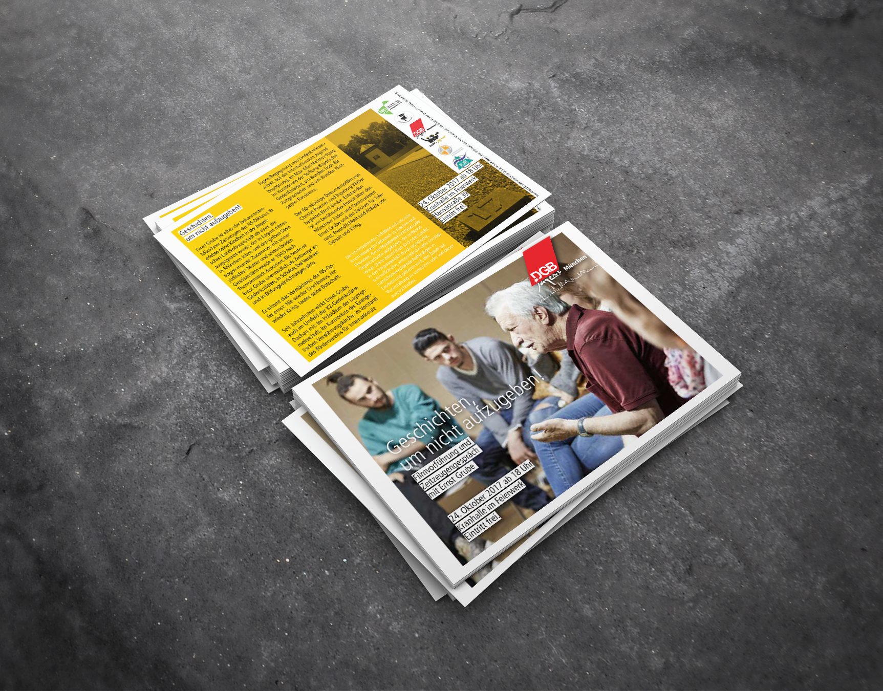 Für die Vorführung des Filmes "Geschichten, um nicht aufzugeben "über Ernst Grube wurde ein Einladungsflyer benötigt.