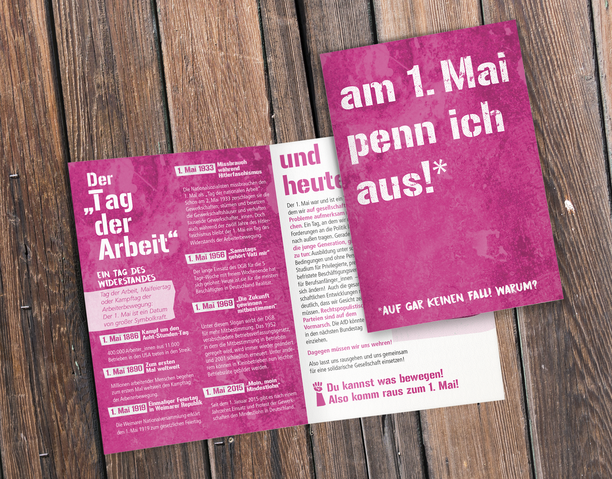 Die DGB Jugend Bayern rief mit diesem Flyer zu den lokalen Aktionen des DGB am 1. Mai in Bayern auf.