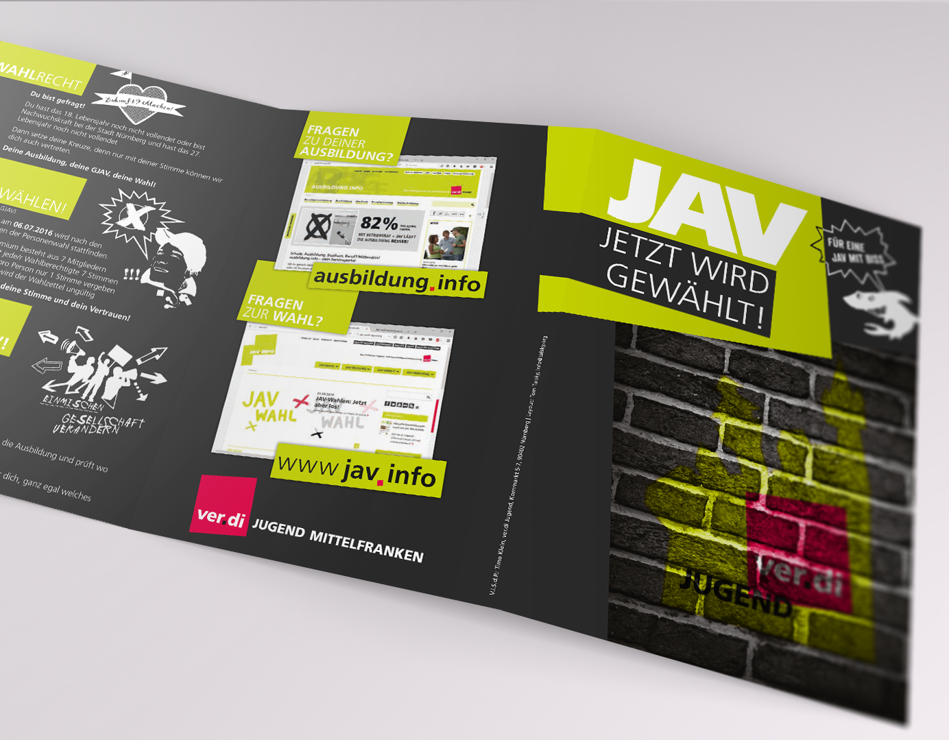 Für die JAV-Wahlen bei der Stadt Nürnberg wurde diese Flyer (DIN A5, 6-Seiter) angefertigt