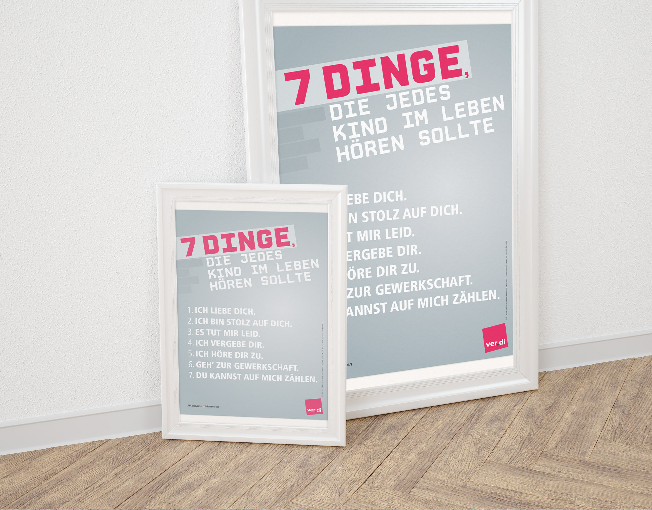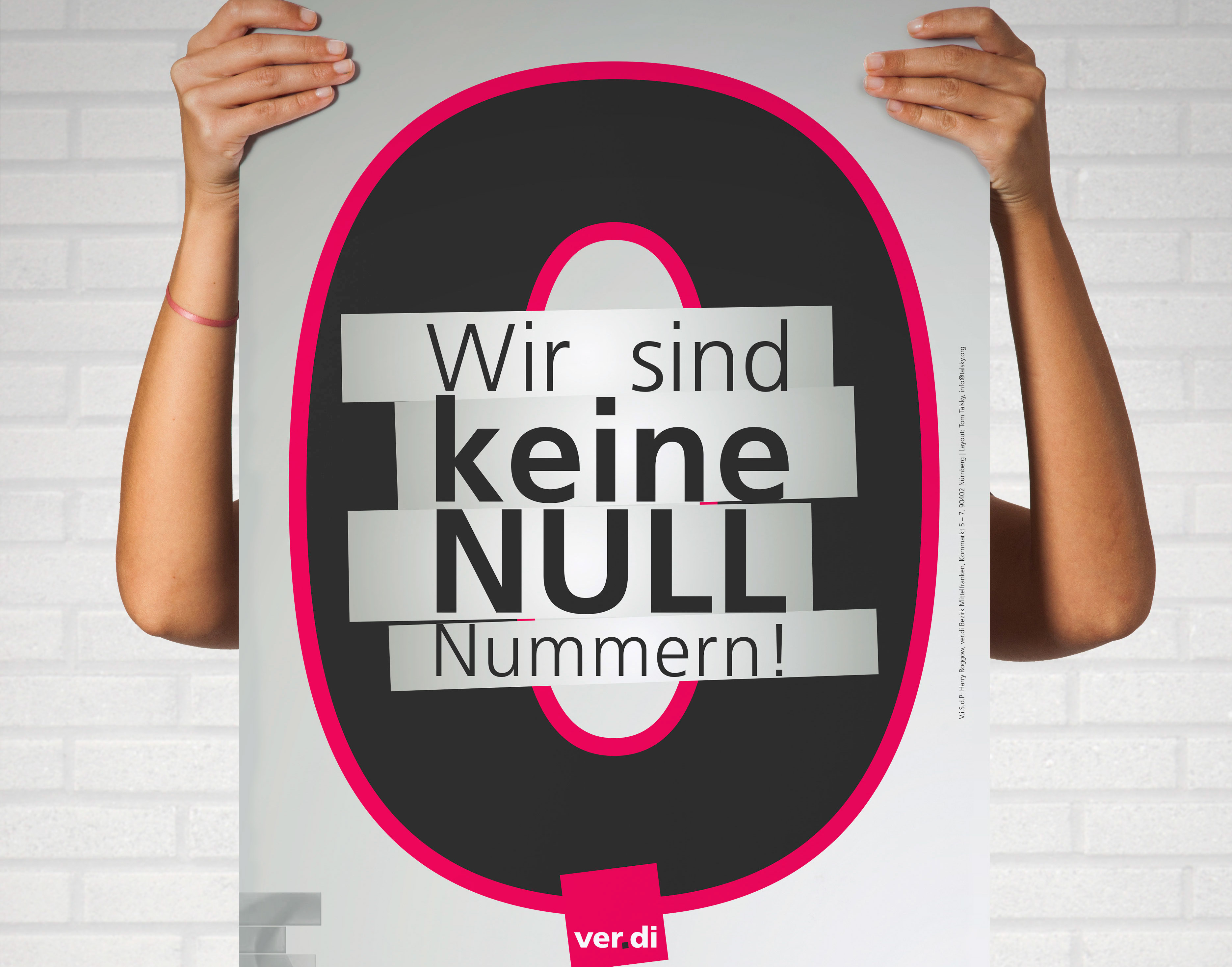 Für den Aushang in Betrieben sollte ein witziges, nettes Plakat gestaltet werden. Das Design orientiert sich stark am CI des ver.di Fachbereichs Finanzdienstleistungen